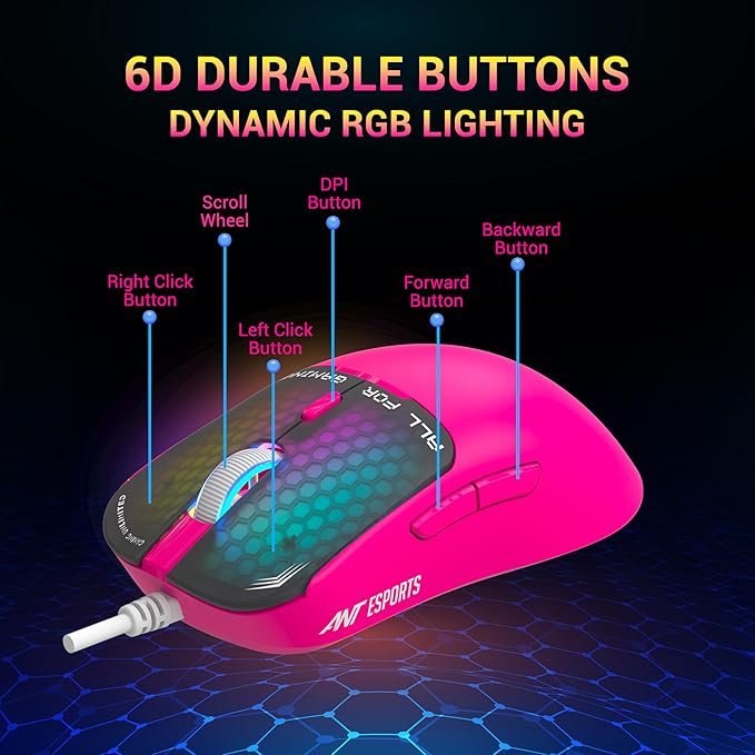Brand Ant Esports Manufacturer Ant Esports, Ant Esports Series Virtus 100 Colour Pink Item Height 0.1 Centimeters Item Width 6.2 Centimeters Product Dimensions 12 x 6.2 x 0.1 cm; 52 g Item model number Virtus 100 (Pink) Power Source Corded Electric Hardware Platform PC Operating System Linux, Mac, Windows XP Included Components Gaming Mouse 1 x User Manual Manufacturer Ant Esports Country of Origin China Item Weight 52 g