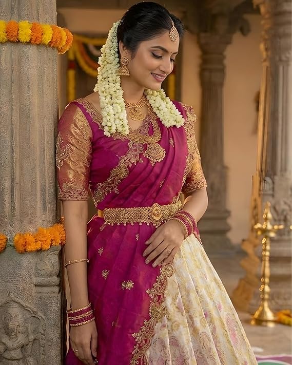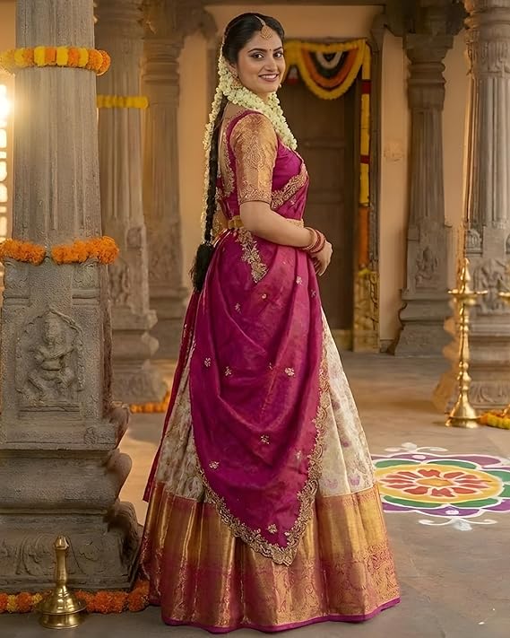 - Perfect for Weddings & Functions: Ideal south indian half saree for women for wedding, reception, mehndi, festival, pooja and traditional family occasions.